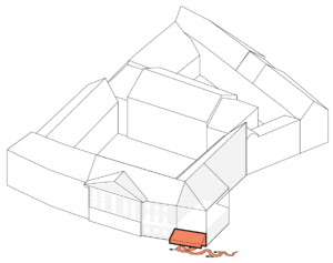 Žvelgiant iš lauko, virš „Lėlės“ stogo iškilusios scenos dėžės nematyti – kitaip nei virš greta esančio Jaunimo teatro. Vis dėlto ši, bet kuriam teatrui būtina, pastato dalis yra – tokio dydžio, kiek užėmė istorinės trečio aukšto patalpos ir po čerpiniu rūmų stogu buvusi pastogė. Išgriovus šią dalį suformuota gelžbetoninė scenos dėžė, tik ne įprastos stačiakampio gretasienio formos, o dvišlaitė.