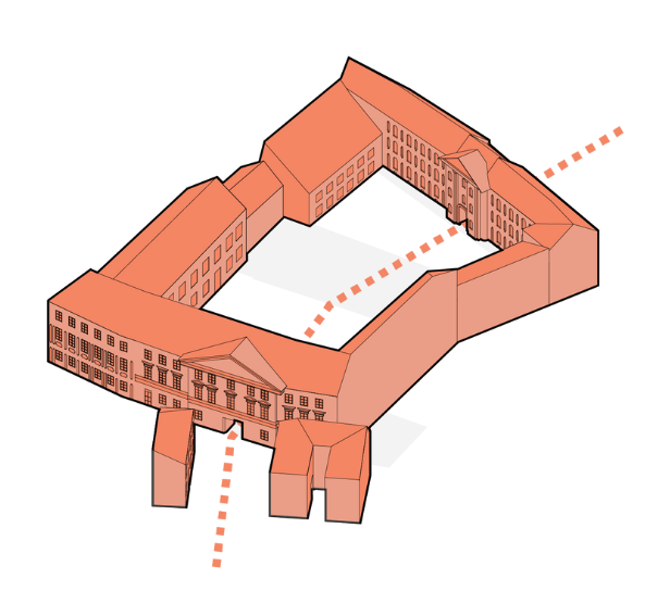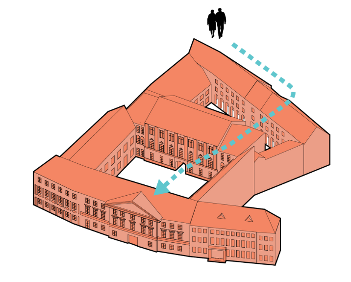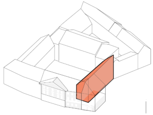 Nors gali pasirodyti, kad „Lėlės“ patalpos išsibarsčiusios po Oginskių rūmų erdves, iš tiesų jos užima L formos segmentą – maždaug ketvirtadalį buvusio stačiakampio rūmų pastato su erdviu kiemu centre. Tai beveik atitinka senąjį Pavlovičių namą, kurį 1729 m. įsigijo Martynas Mykolas Oginskis, pradėdamas formuoti barokinę rezidenciją. Iki tol, XVII a., ši dalis buvo atskiras namas; jame gyveno Dzevlevskiai, vėliau Pavlovičiai. Tad gilyn į kvartalą nusidriekianti ilgoji L dalis tokia pat sena kaip ir Didžioji rūmų salė. Ši pastato dalis matoma tik iš vidinio kiemo; joje išdėstytos visos „nematomos“ teatro funkcijos.